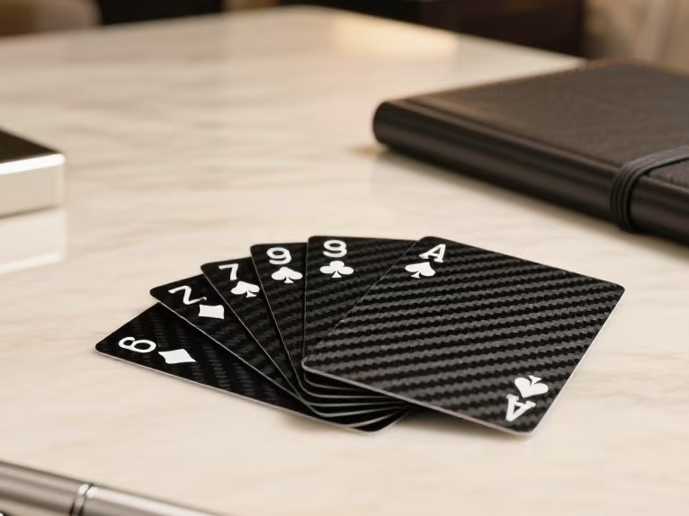 Carbon Fiber Poker Cards combine advanced materials with superior gaming performance and style. Crafted from genuine carbon fiber, these cards are lightweight, durable, and scratch-resistant, ensuring long-lasting use for poker tournaments, tabletop games, and casual play. The unique woven texture and sleek futuristic design make every deck visually striking, perfect for collectors and gift-giving. With options for custom printing, engraving, and high-end box packaging, Carbon Fiber Poker Cards provide both exceptional gameplay and luxury appeal. Whether for professional players or enthusiasts, these cards deliver perfect balance, reliability, and a premium gaming experience.
